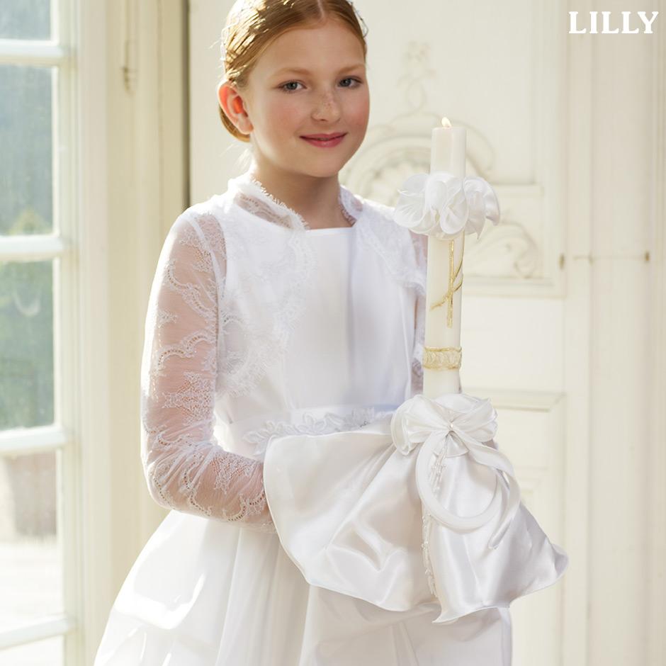Our candle skirt protects small hands from hot candle wax that drip of the communion candle. Our sweet drip protection in either tulle or satin, stops candle wax from running down the sides of the communion candle.