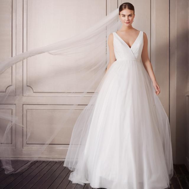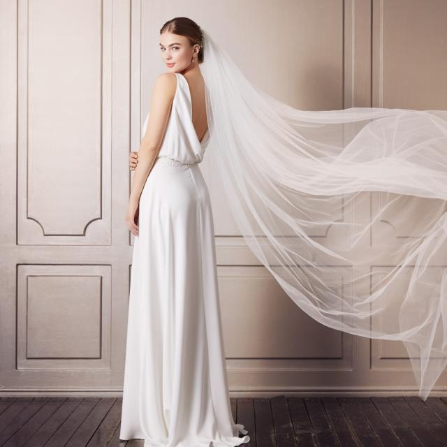 - Le satin épais, le léger crêpe georgette et le tulle aérien sont ici travaillés avec une élégance simple et délicate.