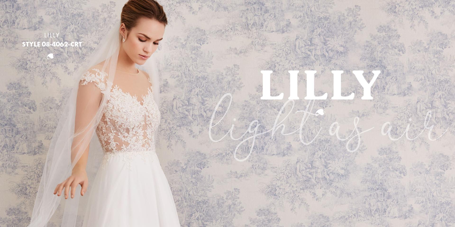 If you are dreaming of a fairytale, then this is the weddingdress for you! The petite lace with 3D leaf pattern hovers invisibly on skin-colored tulle-lining and highlights the lightness of the dress - the hidden pockets are a sophisticated detail.