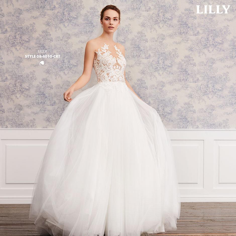 A perfect mix of lace on nude-coloured lining on the top and multible light layers of soft tulle on the breezy skirt, with lace appliqués matching the bodice.